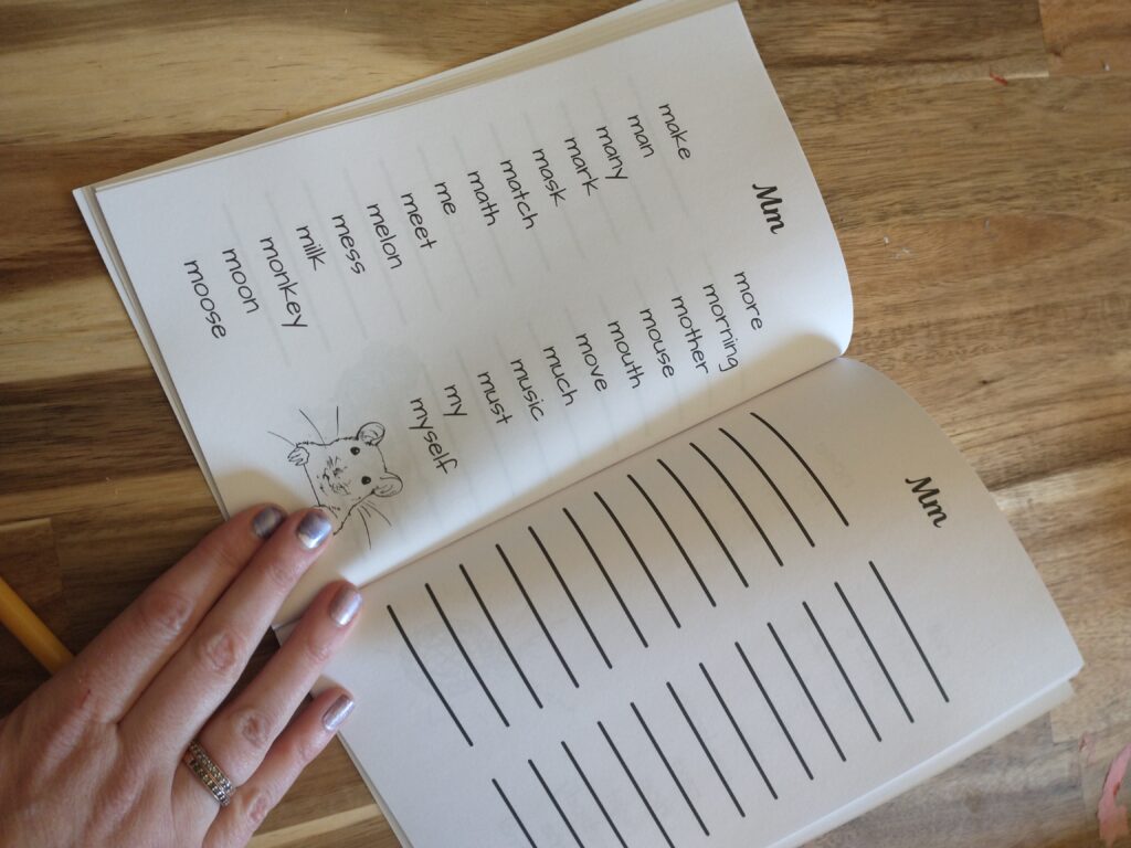 When G first started writing, she asked me to spell almost every single word. And while I loved supporting her burgeoning skills (and being able to decipher the words on the page), I felt like I was always spelling the same words over and over again. I wanted a tool that would help her to be more independent but that wasn’t overwhelming to use.