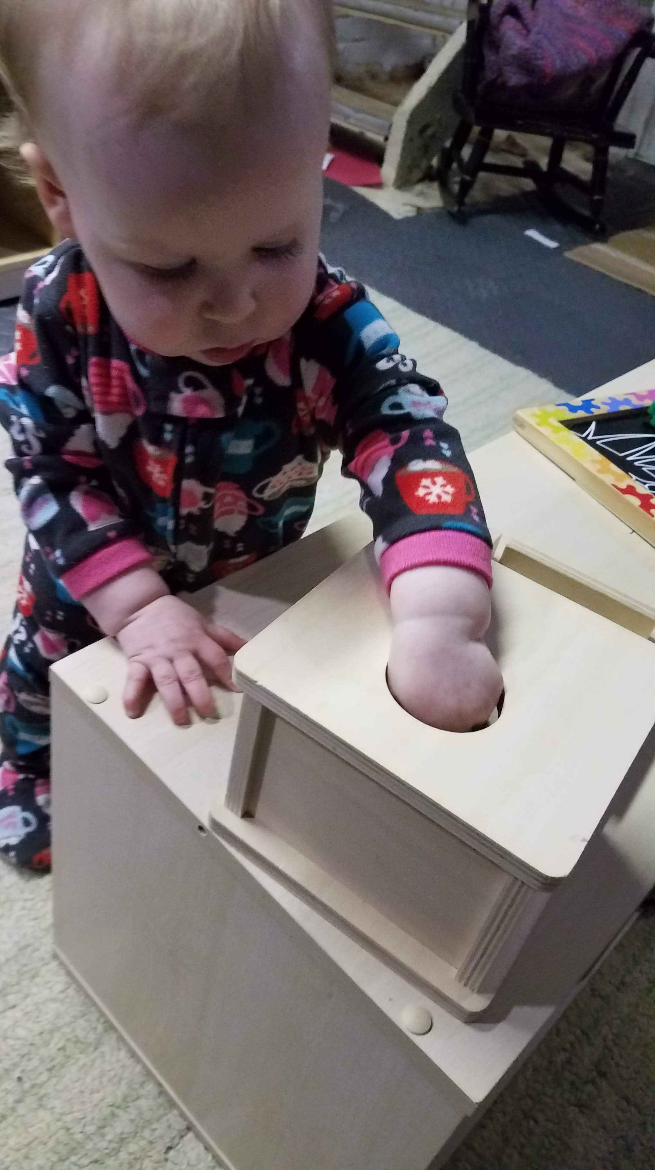 Ever hear of an Object Permanence Box? No? Not surprising. Until I worked at a Montessori school, neither had I.