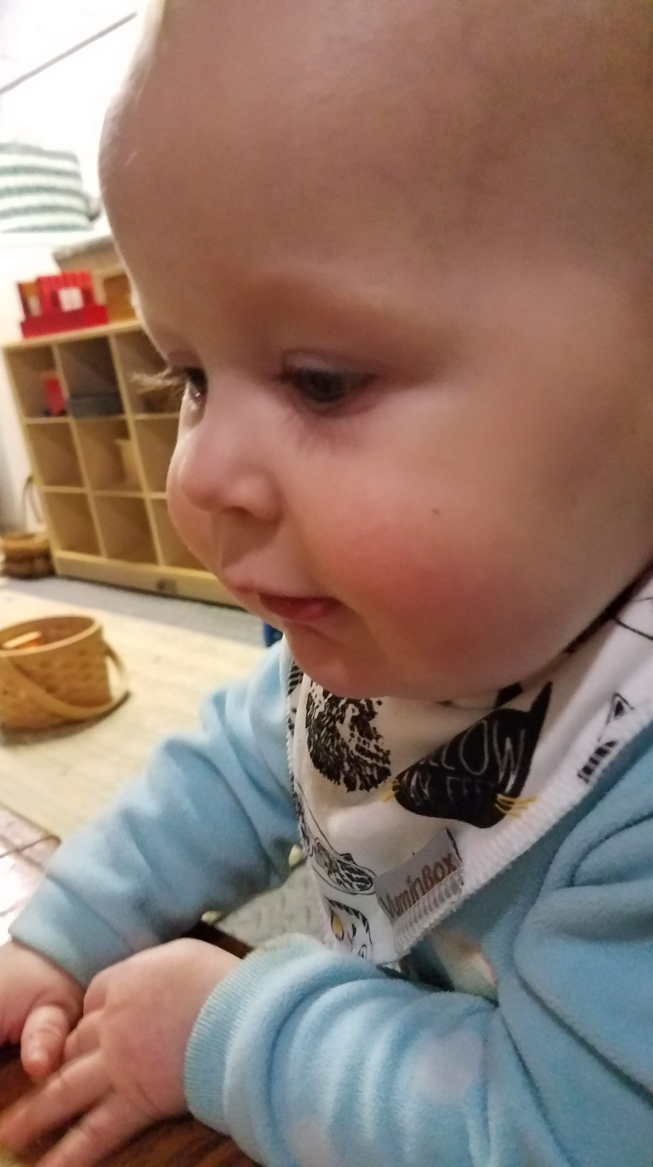 This work is best introduced when a baby is between 8 and 12 months old. Though I promise you, your one year old will still find it enthralling, annnnnnd there are more complicated versions for once they get older. It’s best if the baby can sit up or stand (if you put it on a table before introducing it.