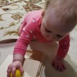 (Side note: Charlotte always puts the ball in her mouth at least once. I try to redirect her gently to putting it into the hole, but I don’t stress when she does. Your choice. Personally, I think that since it’s our item, and she’s still at the stage where most things go into the mouth (which is developmentally appropriate), I don’t worry so much. )