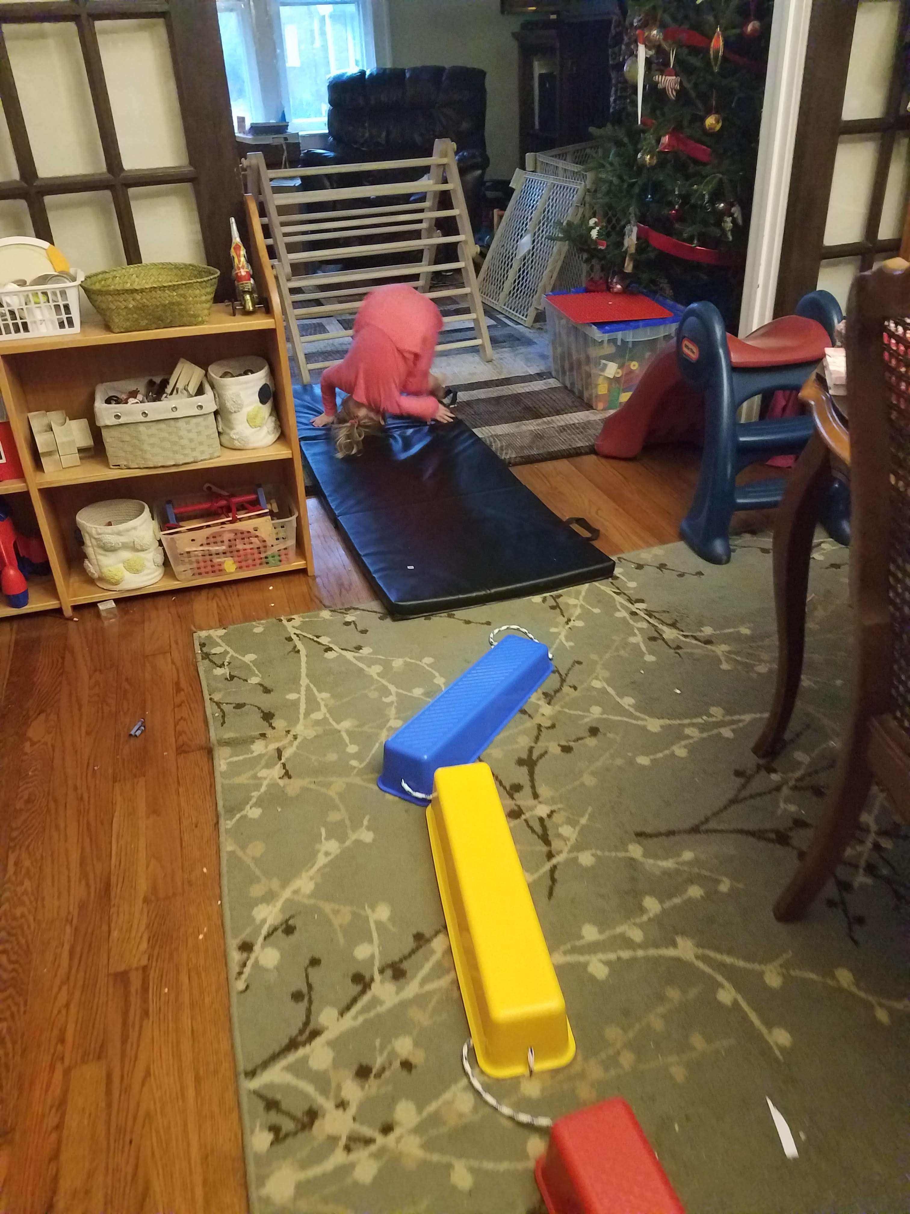 A big change since we took our hiatus is that Charlotte is fully mobile. She can crawl, pull herself up, cruise around tables, and is even trying hard to take those first steps. Most of the time, we try to be in the classroom while Charlotte naps, but just like all other things homeschooling, flexibility is key, so I know to expect plenty of days when she’ll join us downstairs. This does mean that I have to look at our classroom with new eyes and a new perspective. Here are a couple of changes we’ve made to adjust for Charlotte’s new developmental milestones.