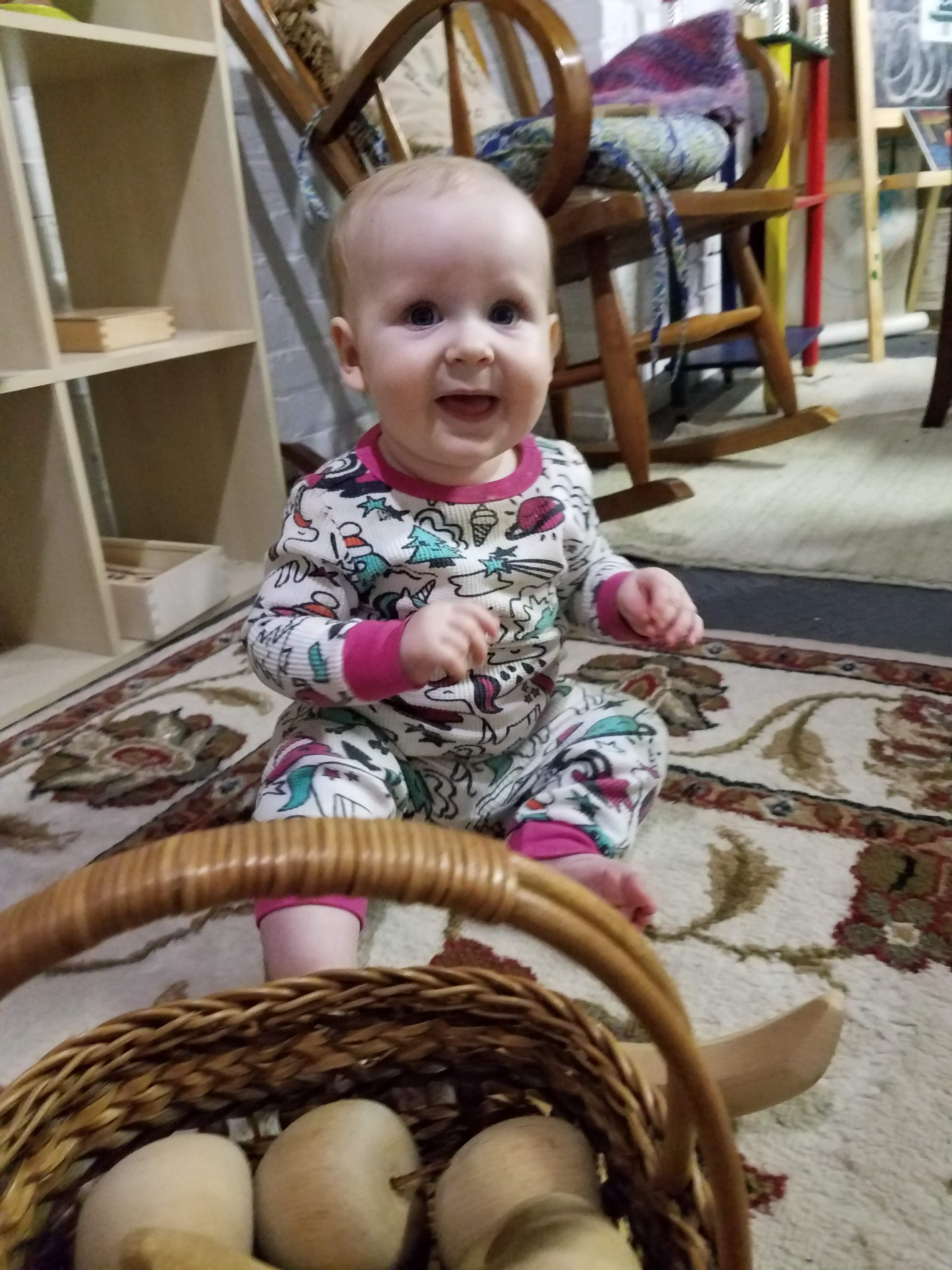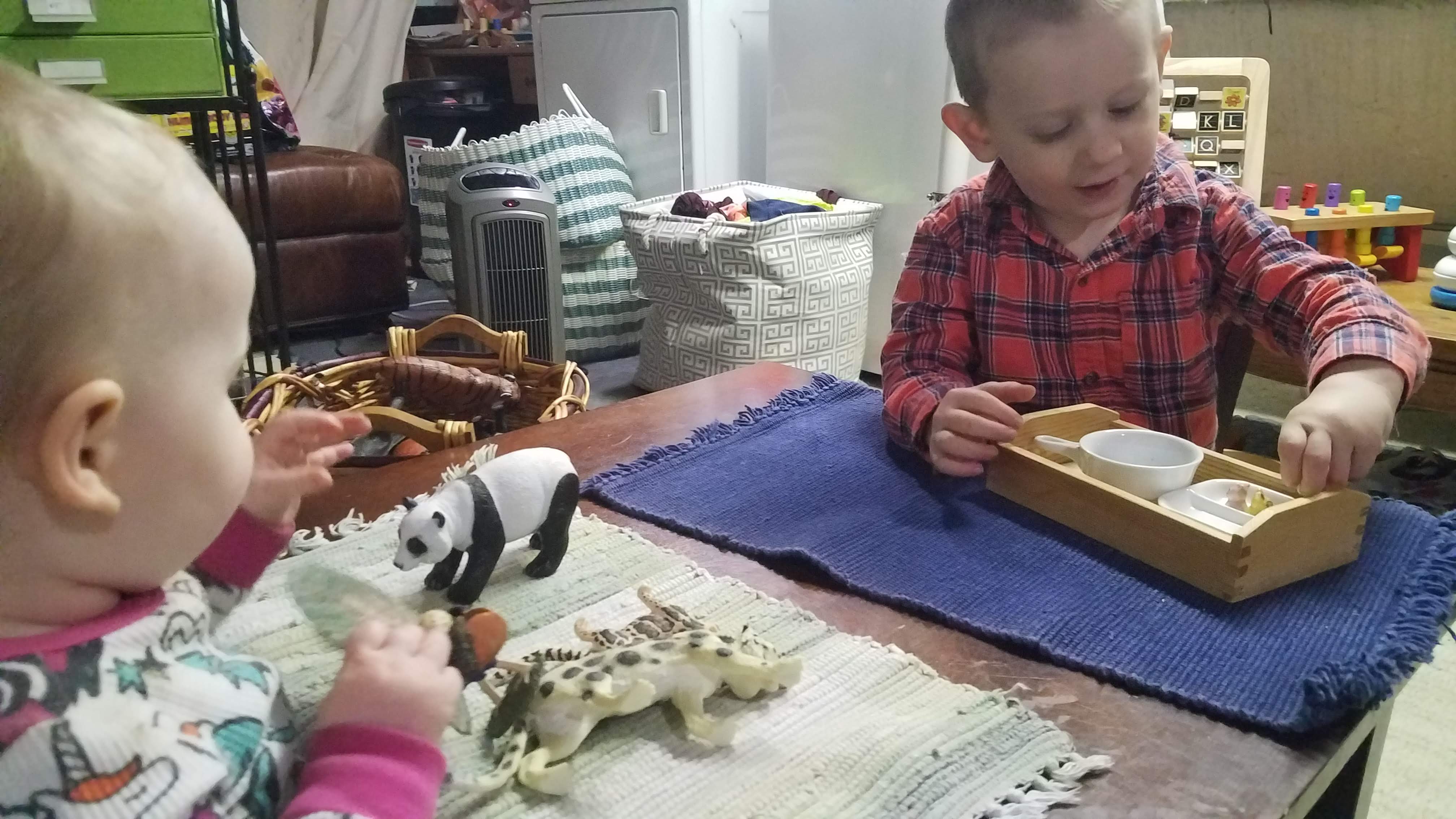 Aside from moving some of the works with tiny pieces onto higher shelves, our classroom has not been rearranged in any big way. There is no separate section for Charlotte or playpen meant to contain her. She will be free to move about the classroom just as William and Gianna are, which is where the biggest change to our classsroom routine will come in- the change in our mindsets and understandings. I will need to get back into the habit of paying very close attention to what is engaging her, and being aware of what she needs in the space.