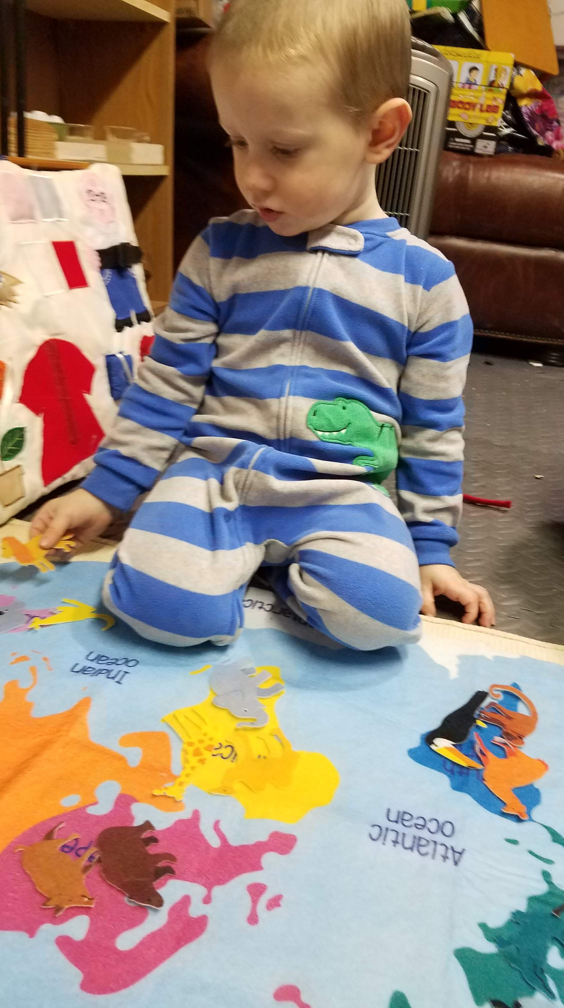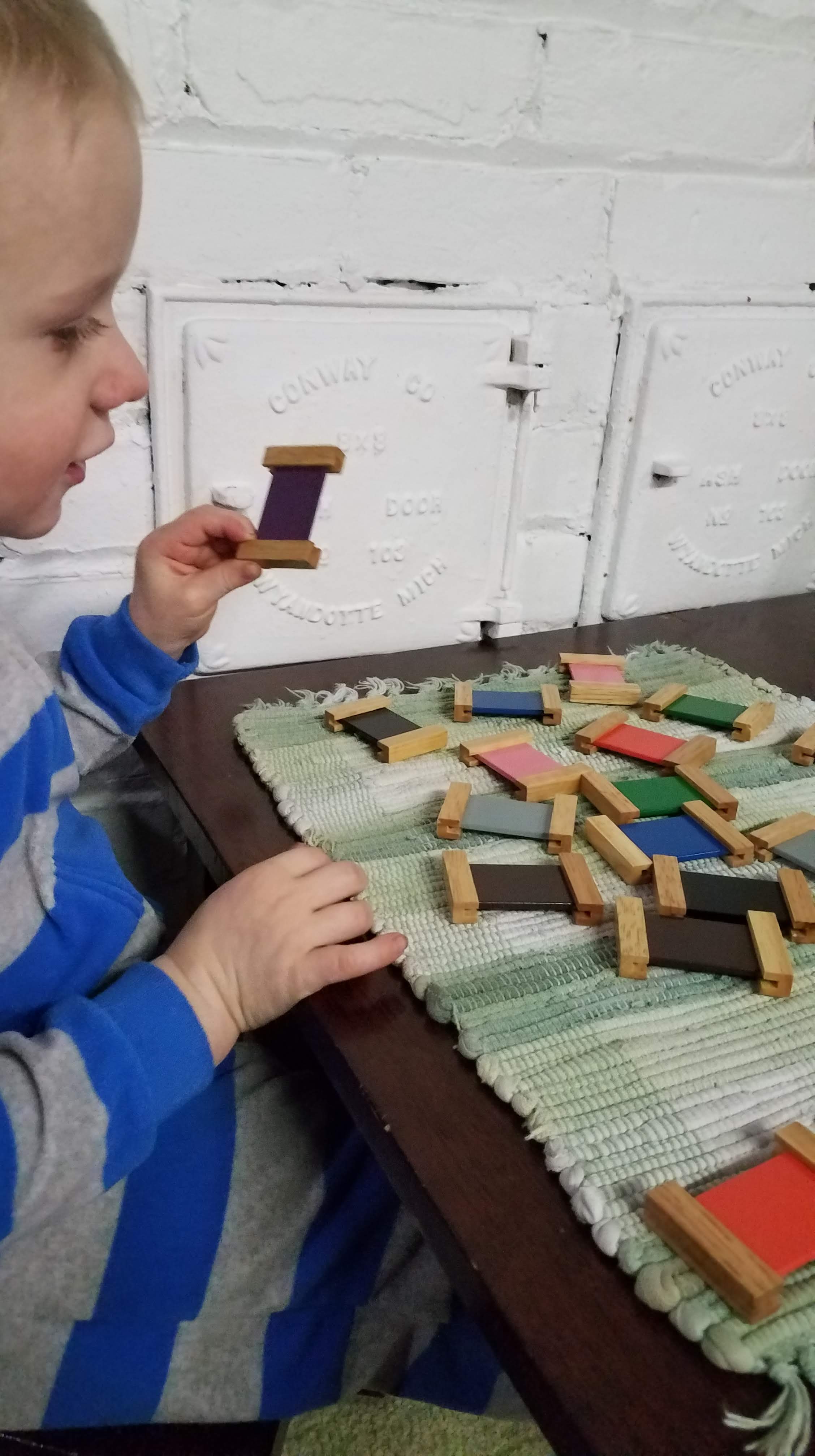 So here, in photos, is a glimpse into the work of my two year old.