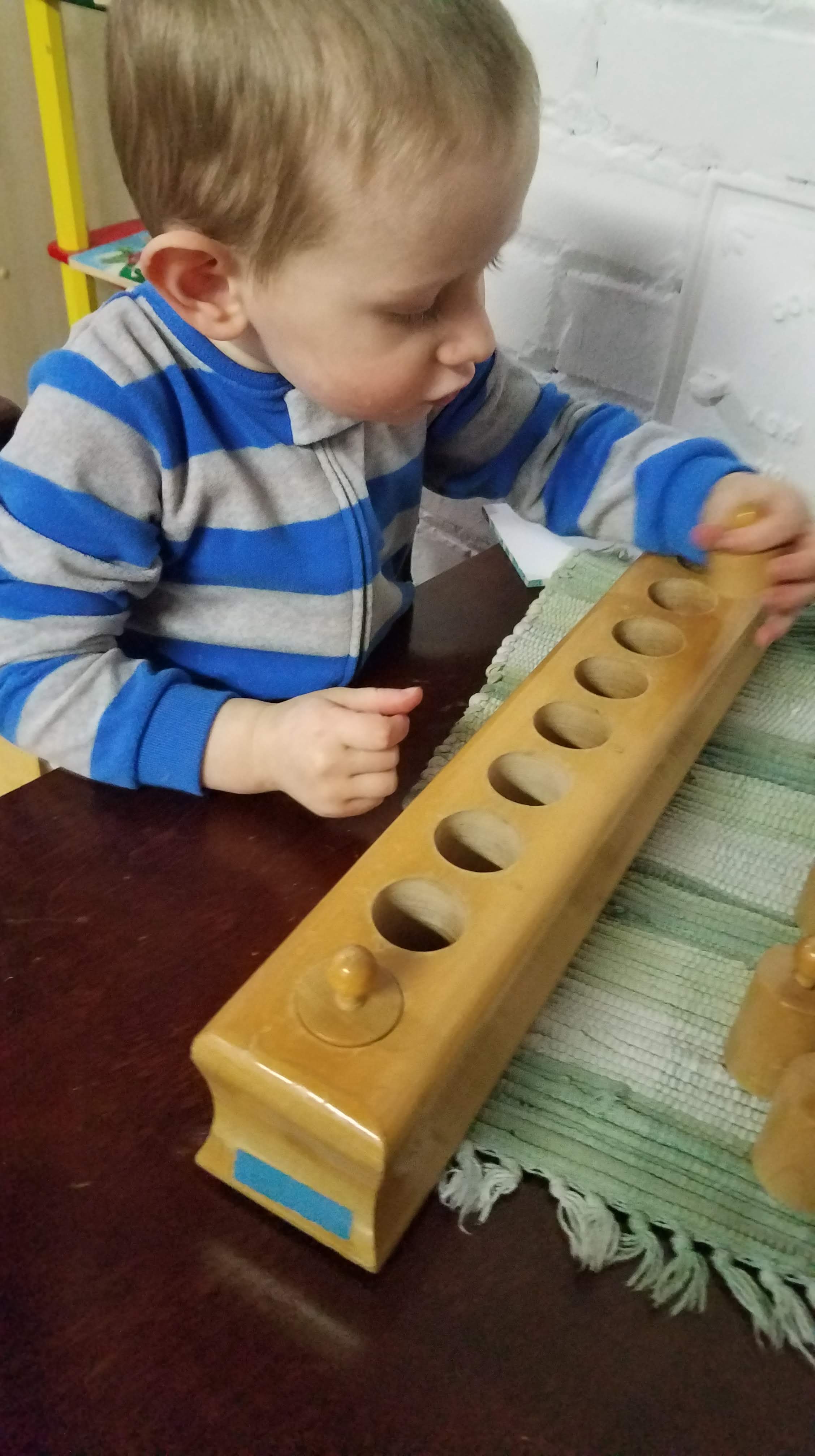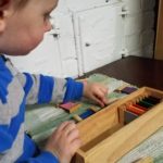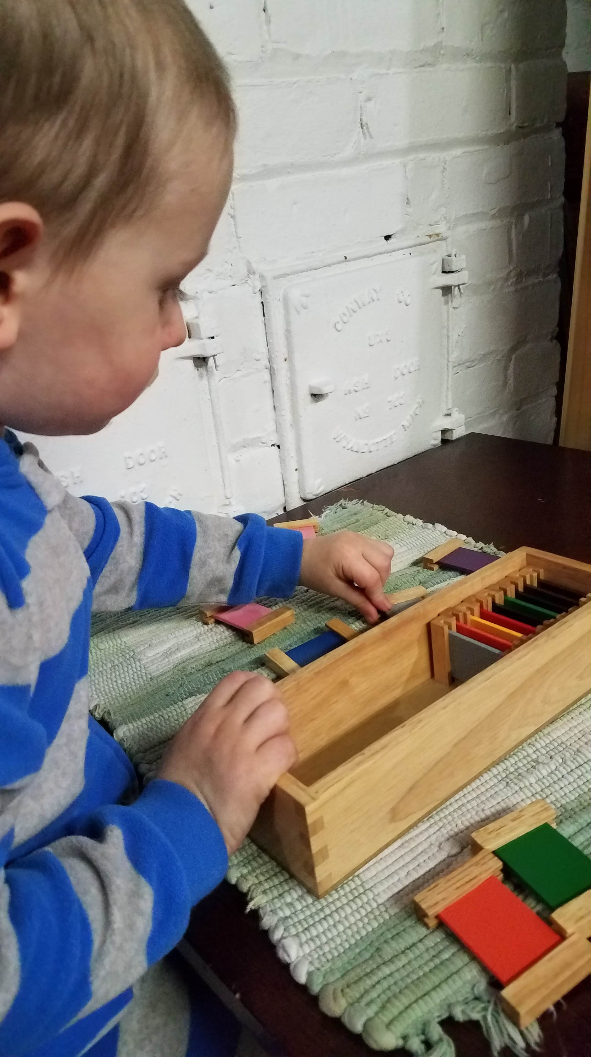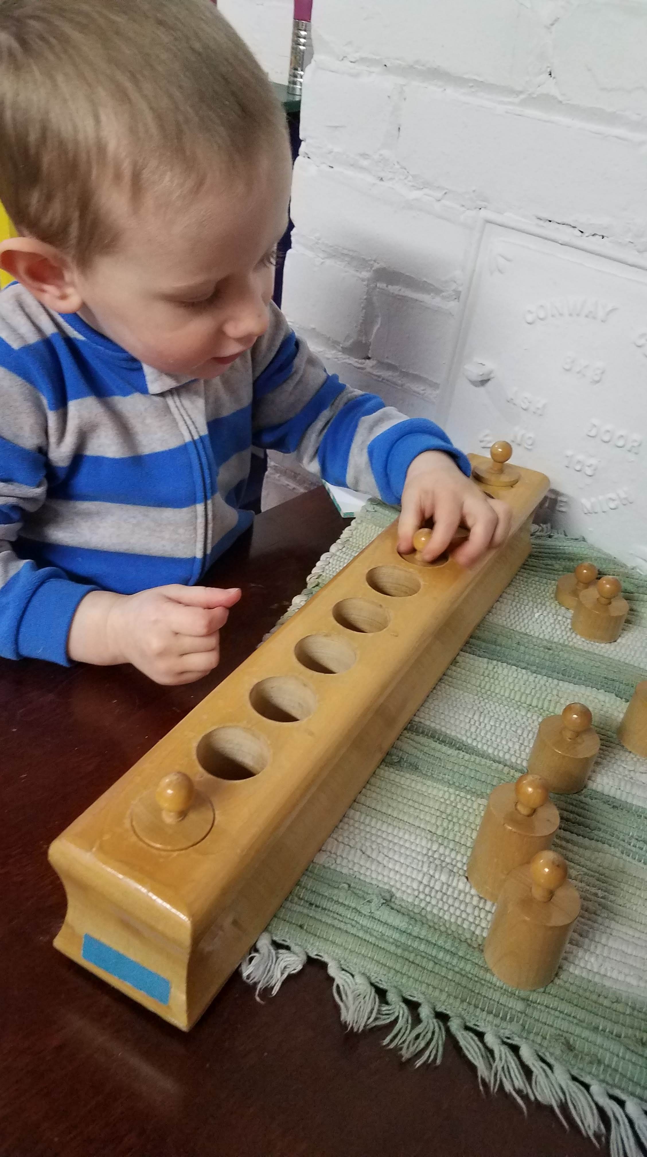 Yesterday during our classroom time, I was struck by his ability to concentrate, and found myself doing what a good Montessori teacher does when the kids are working- observing him at work.