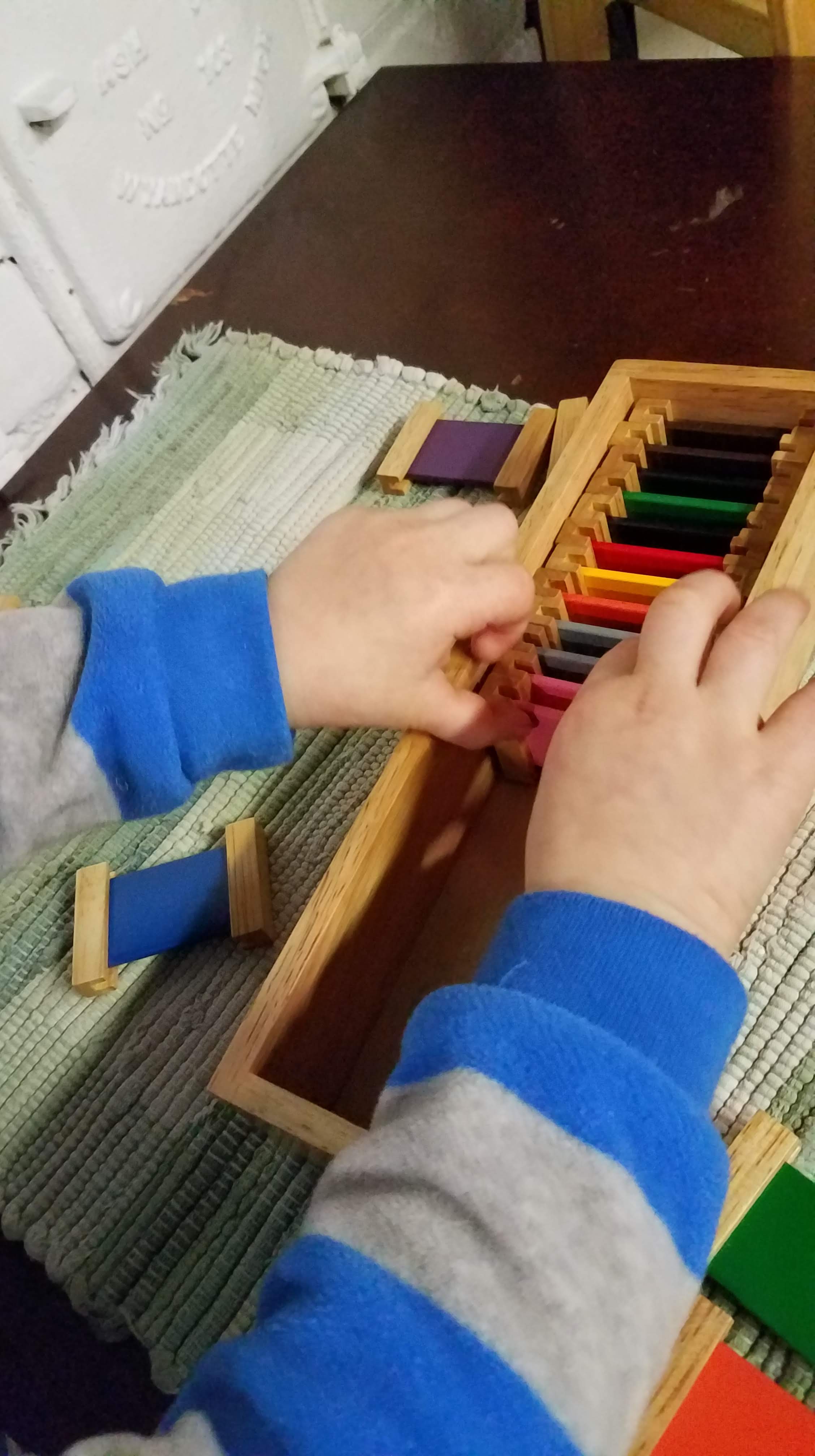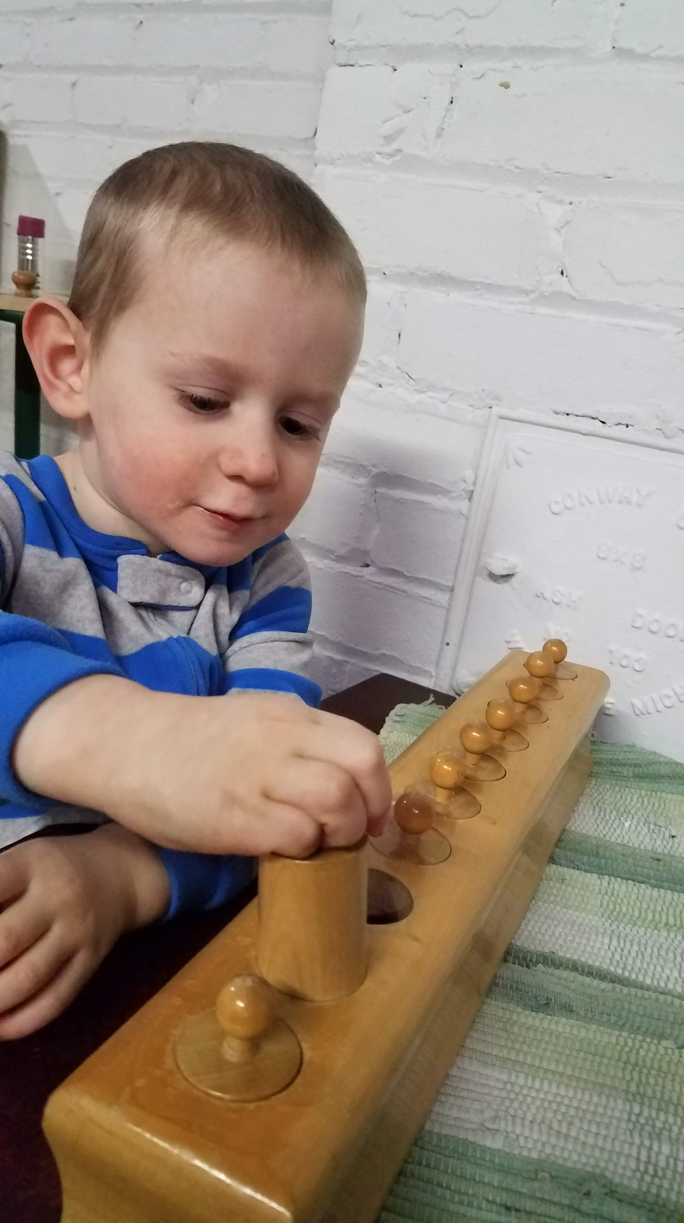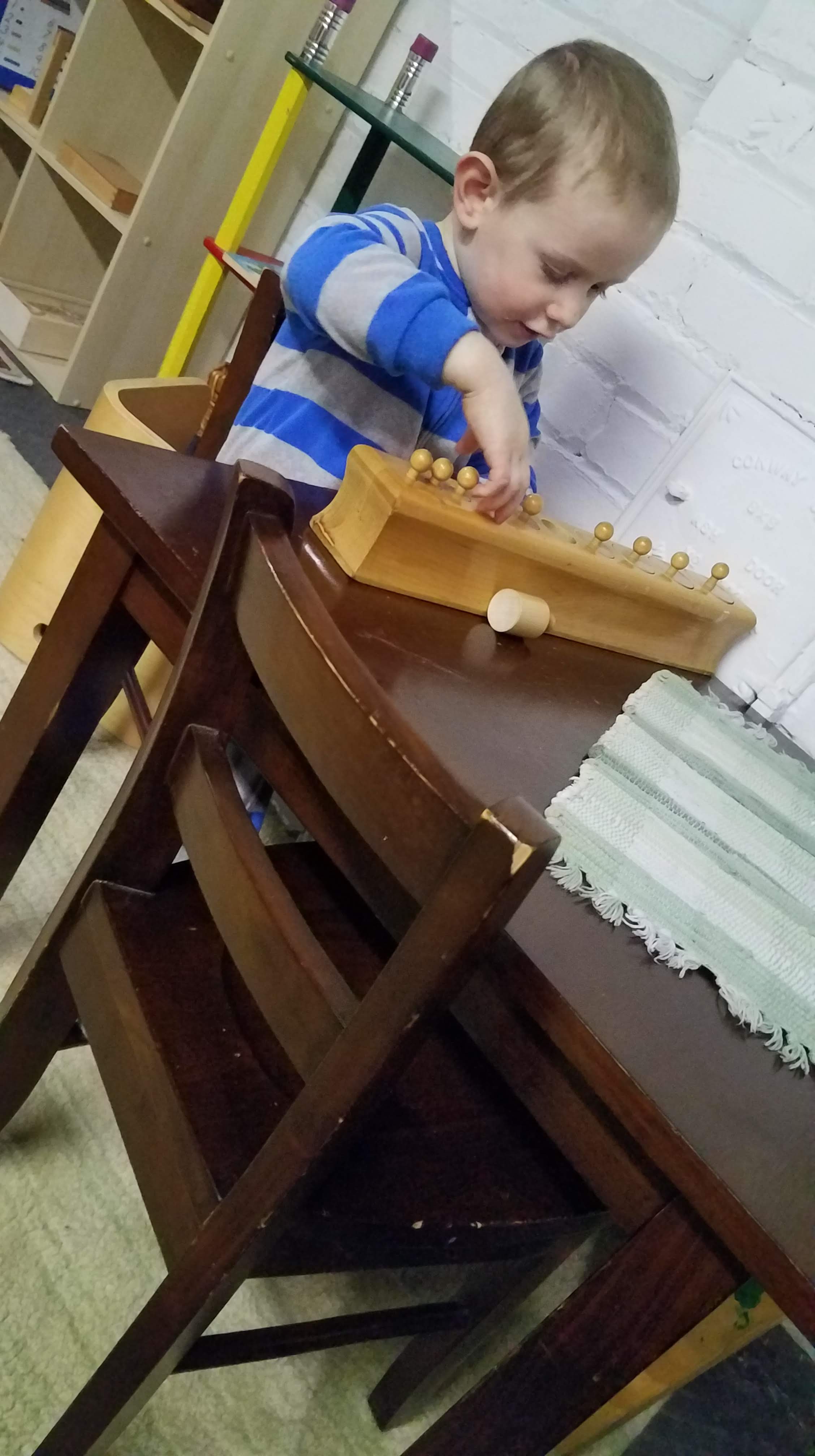 Yesterday during our classroom time, I was struck by his ability to concentrate, and found myself doing what a good Montessori teacher does when the kids are working- observing him at work.